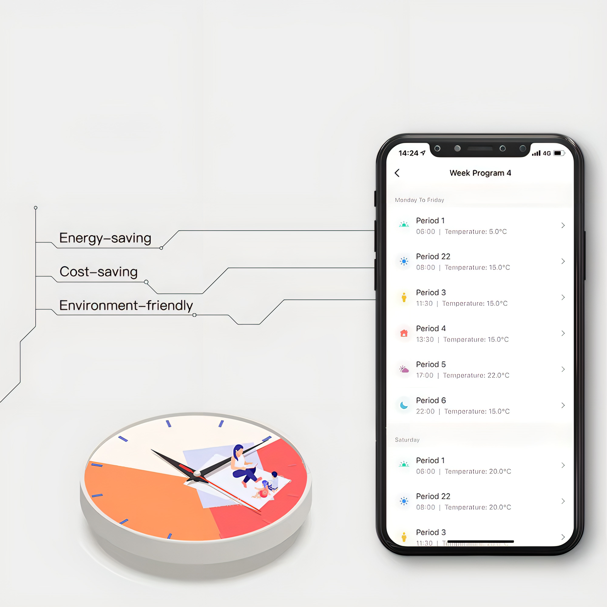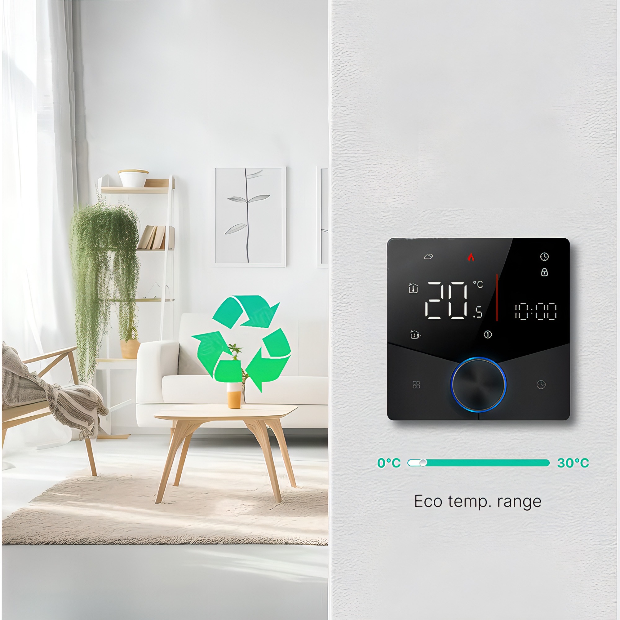 Voorzien van een timerfunctie die gebruikers helpt energie te besparen, kosten te verlagen en milieuvriendelijk te zijn. Door specifieke tijden voor verwarming of uitschakeling in te stellen, optimaliseert het energiegebruik en zorgt het tegelijkertijd voor comfort en duurzaamheid.