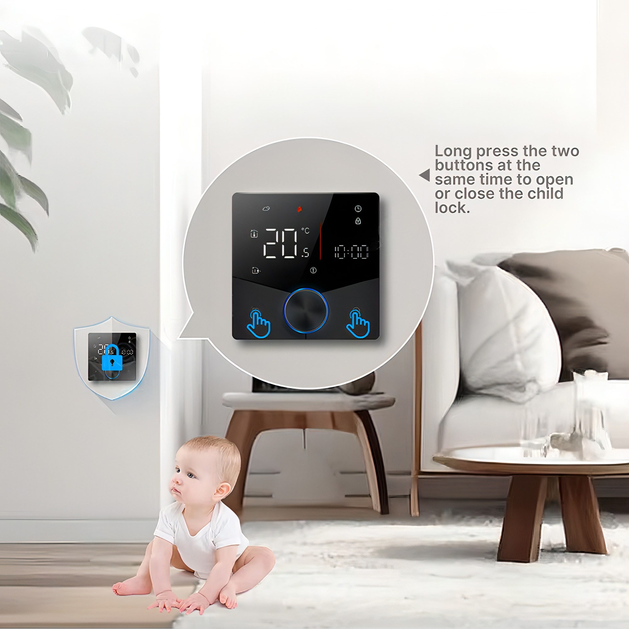 Met een hoge temperatuurbeschermingsfunctie stopt het apparaat automatisch met verwarmen wanneer de temperatuur de ingestelde waarde bereikt, waarbij het verwarmingsicoon knippert. Deze functie zorgt voor veiligheid door oververhitting te voorkomen en biedt een zorgeloos gebruik.
